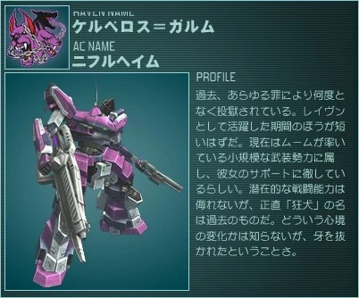 Cerberus Garm (ケルベロス=ガルム Keruberosu-garumu) is an independent Raven in Armored Core: Last Raven.