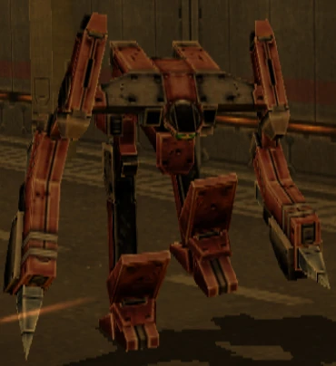 The successor of the Gibbon MT, the Gibbon MS-HA is a manned humanoid, reverse-joint MT larger than an AC. Its weapons include dual rocket launchers and dual parrying blades. Given the increase in equipment, the unit can deal out greater damage at the cost of some mobility. When enemies approach, it will strike with its blades, but otherwise rely on its rocket launchers. These adaptations have made the unit more reliable as a security or defense MT. Its armor is reliable being able to take a number of hits before failing.