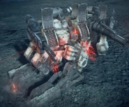 They are large, bipedal unmanned MTs referred to as "Drones" by Walter, with powerful tank treads mounted to the back of their lower legs and lower back. They kneel down to lower all 4 treads to the ground, allowing them to rocket around at insane speeds, but only forwards. Because of this, their upper body is on a swivel, allowing them to see and attack regardless of their leg's direction. Although their legs most often function similar to an AC's tank treads, they can use their proper legs to leap from the ground in order to perform a powerful kick against the player, similar to reverse-jointed legs. Although rarer, they can also perform a horizontal kick against nearby enemy.