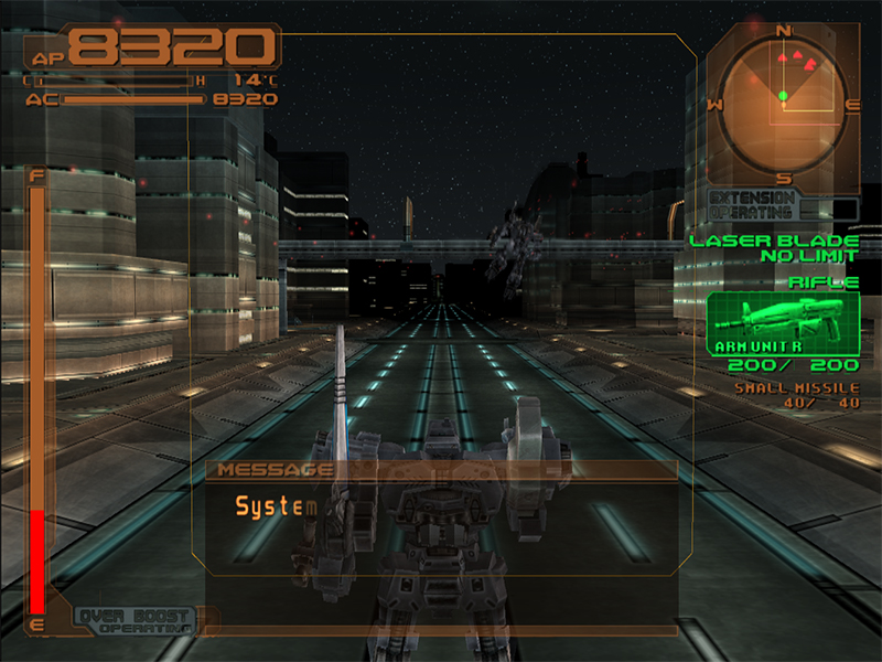 Evaluator:We’re nearly there. I’ll go over the mission one more time. Your objective is to eliminate all forces occupying the city. The targets are battle MTs. Complete the mission, and you’ll be registered as a Raven. This is a once-in-a-lifetime opportunity. Don’t blow it. Entering the area of operations. Move out. |