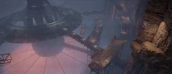 From where the player enters the chasm, a waypoint directs the player towards a man-made platform below providing cover from sniper fire. From here, the player can descend further and make their way towards the right to a large support beam closer to the laser barrier, out of sight from the cannons. The "Observation Data: The Enforcement System" data log can be found on a wreckage here. Players can choose to proceed toward the reactor and make their way around and inside, or alternatively, ascend to the top of the reactor exterior from the laser cannon's blind spot and begin dispatching them.